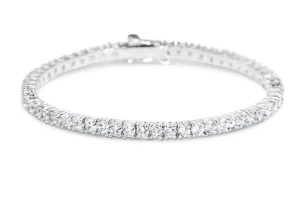 Description: This incredible platinum tennis bracelet is a classic but elegant design. The beautiful lab-grown round diamonds are set into a 4claw collet with total carat weight of 4.00 carats. The diamonds at based on an F/G colour VS/SI clarity. With the bracelet length of 7” long.